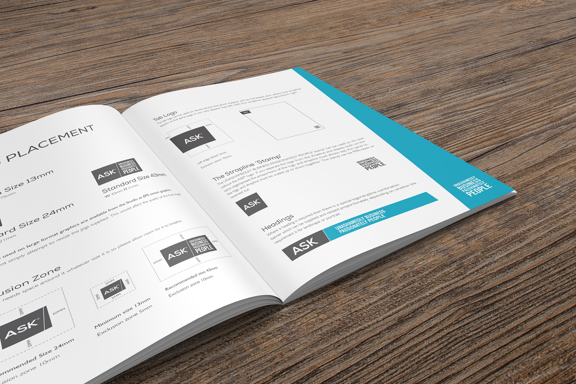 I developed and created our Branding Guidelines for ASK, along with corresponding PowerPoint slides for branding workshops.